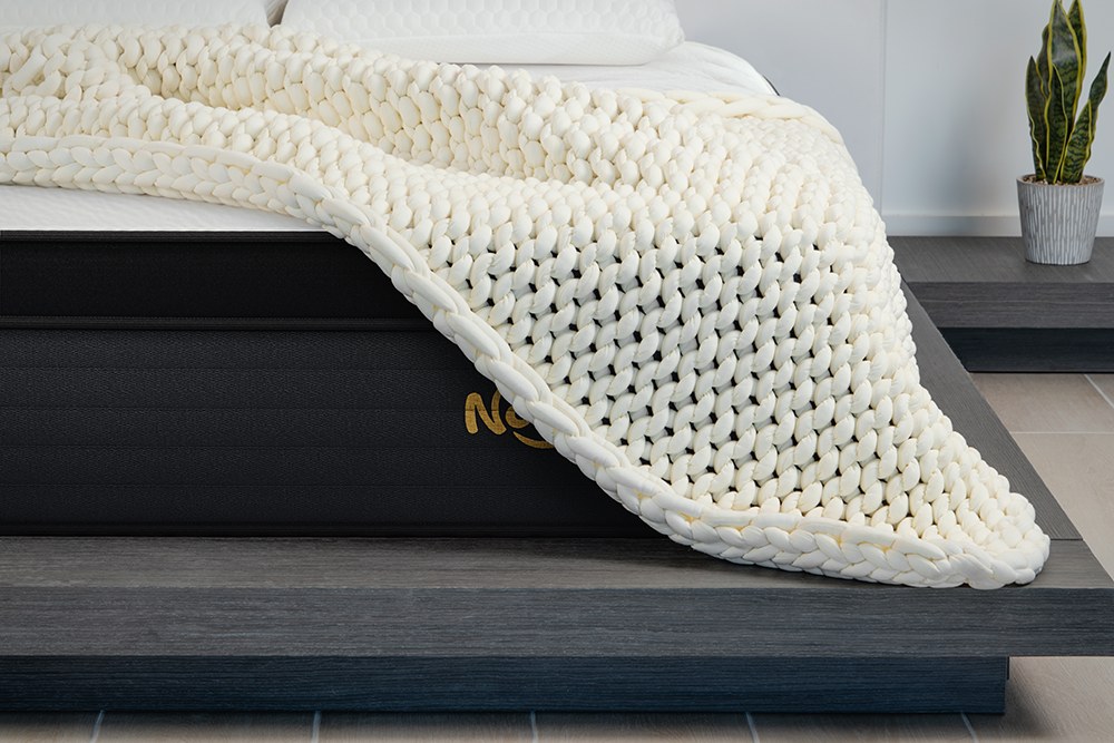 Our weighted blanket has a plush, cozy feel, and its breathable knit prevents overheating.